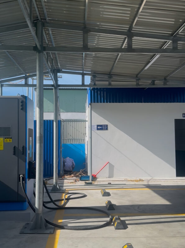 • 2 trụ sạc 120kW – tốc độ sạc nhanh, phù hợp với xe dịch vụ.